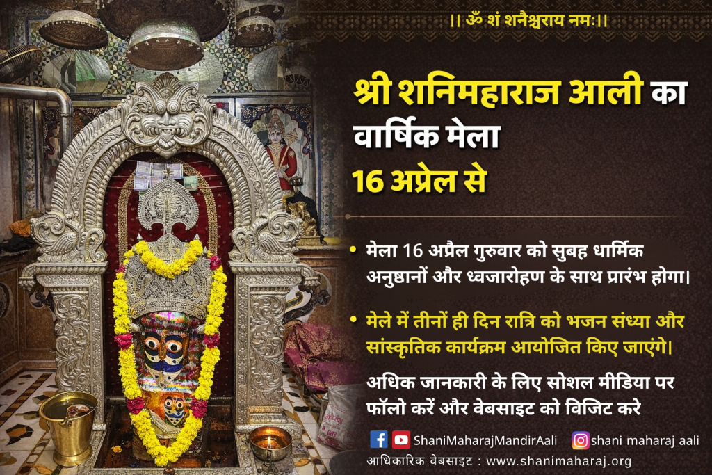 श्री शनि महाराज आली का तीन दिवसीय वार्षिक मेला 16 अप्रैल, गुरुवार से